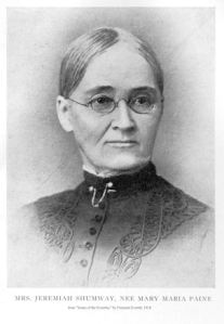 Mary Maria Paine was born on 28 Jul 1832 in Pascoag, and married Jeremiah Shumway ,son of Noah Shumway and Pamela Aldrich, on 24 July 1852 in Worcester, Massachusetts.