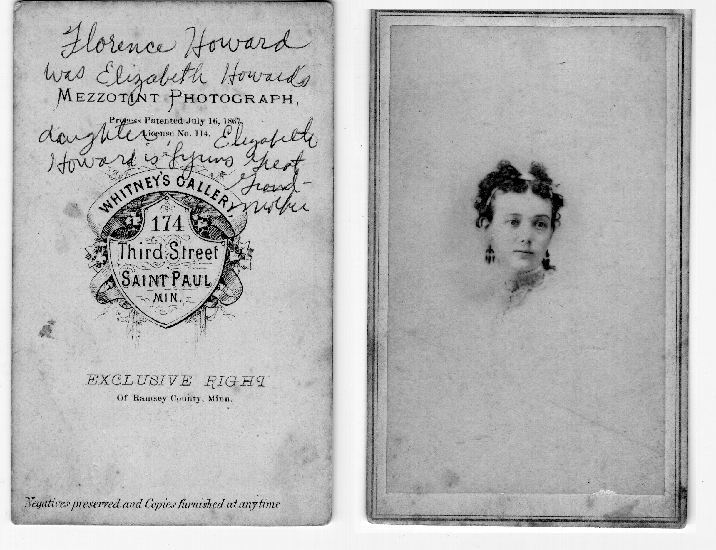 Florence Irene (1848-1871) Florence married Thomas Gere in 1868; She had a little girl,Florence Bertha, in 1869 who died the next year; and she herself passed away in 1871.